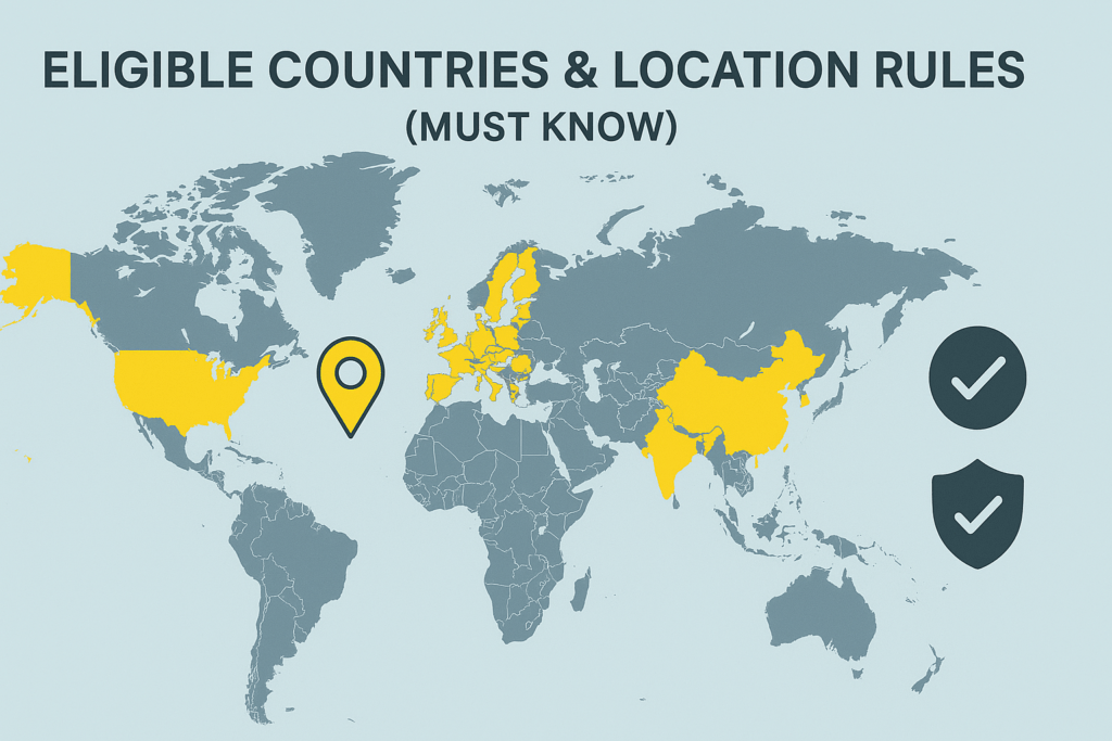 - You must reside (if you are an individual) or have your principal place of business (if you are an entity) in an Eligible Country